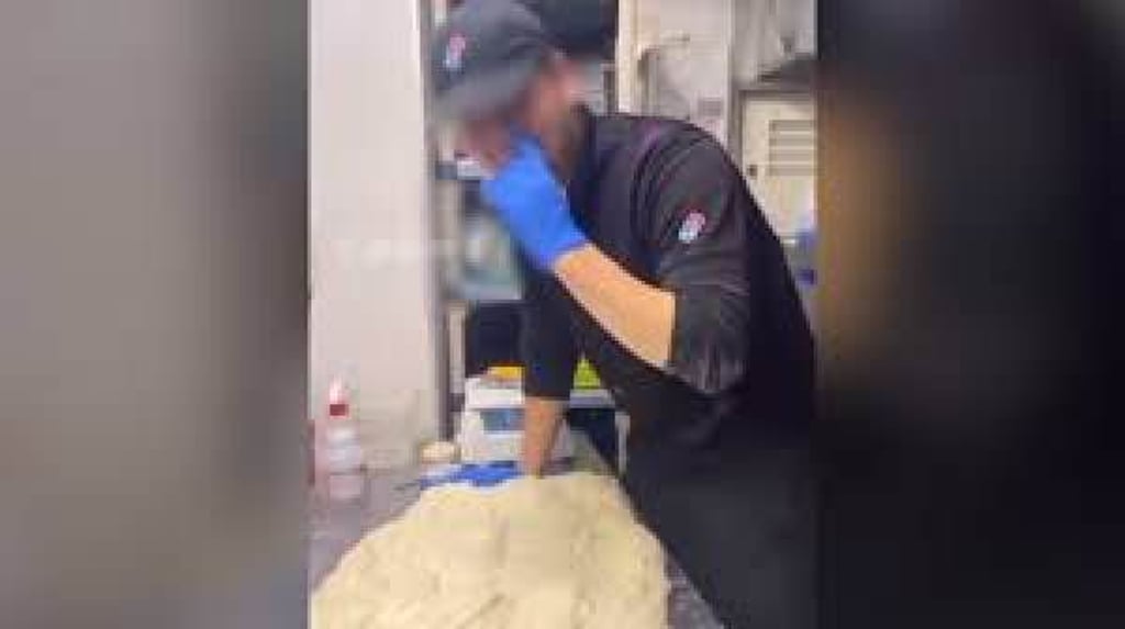 Главен готвач бръкне в носа си и след това изтрива пръста си в малко тесто във видеоклип „baito tero“. Снимка: Раздаване