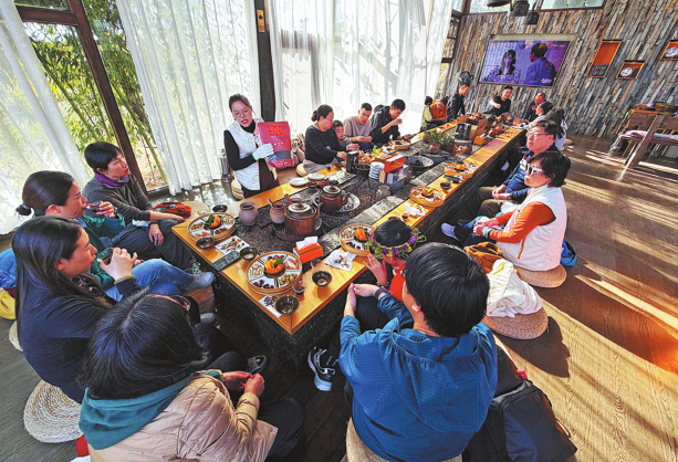 Туристи се наслаждават на чай в чайна в Tengchong, провинция Юнан, на 30 януари. DU LIANYI/CHINA DAILY