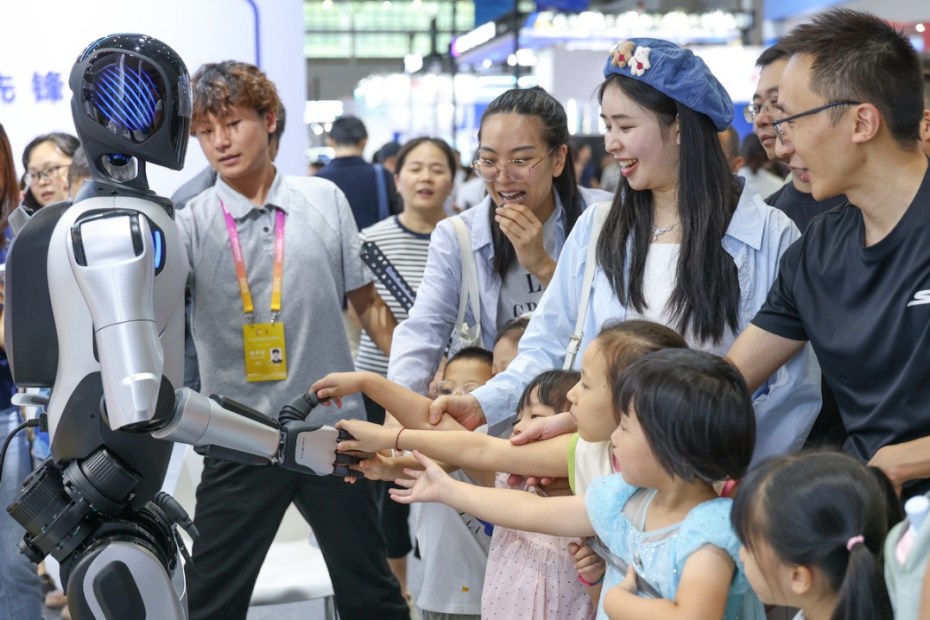 Посетителите си взаимодействат с робот за домашни услуги по време на Световния Smart Industry Expo 2025 в община Chongqing в Югозападен Китай, 6 септември 2025 г. [Photo/Xinhua]