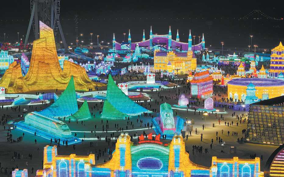 Посетителите се наслаждават на времето в Harbin Ice-Snow World в Харбин, североизточна китайска провинция Heilongjiang, на 17 декември. ZHANG SHU/FOR CHINA DAILY