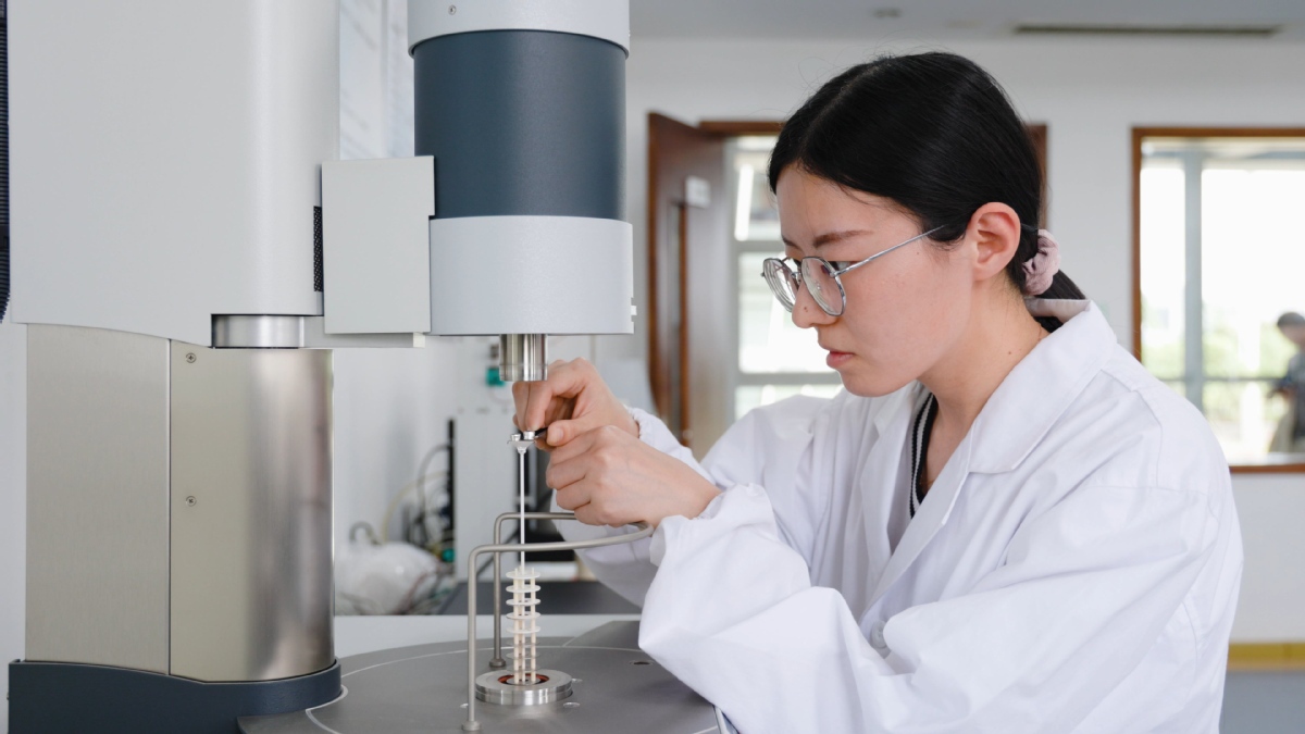 Изследовател провежда експеримент в ключова лаборатория на Bengbu Design and Research Institute for Glass Industry Co Ltd на China National Building Material Group Co Ltd в Бенгбу, провинция Анхуей. КИТАЙ ДАЙЛИ
