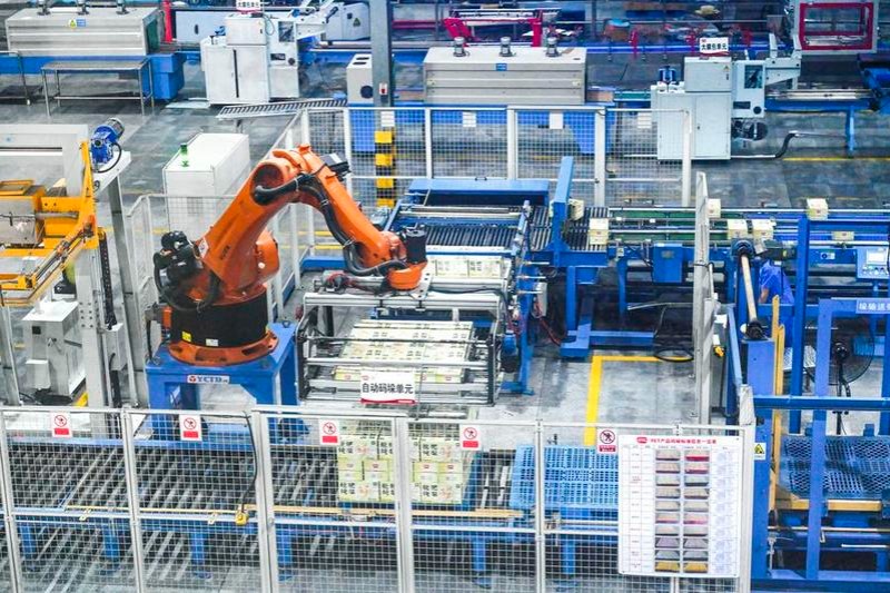 Роботизирана ръка се вижда в интелигентния цех на Panpan Foods в Jinjiang, провинция Fujian в Югоизточен Китай, 19 август 2025 г. [Photo/Xinhua]