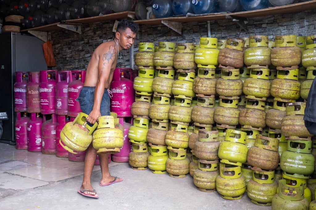 Мъж сортира бутилки за готвене с втечнен нефтен газ (LPG) в магазина си в Индонезия в понеделник. Цените на тубите с пропан-бутан от 12 кг бяха повишени в Джакарта, Източна Ява и Централна Ява. Снимка: EPAМъж сортира бутилки за готвене с втечнен нефтен газ (LPG) в магазина си в Индонезия в понеделник. Цените на тубите с пропан-бутан от 12 кг бяха повишени в Джакарта, Източна Ява и Централна Ява. Снимка: EPA