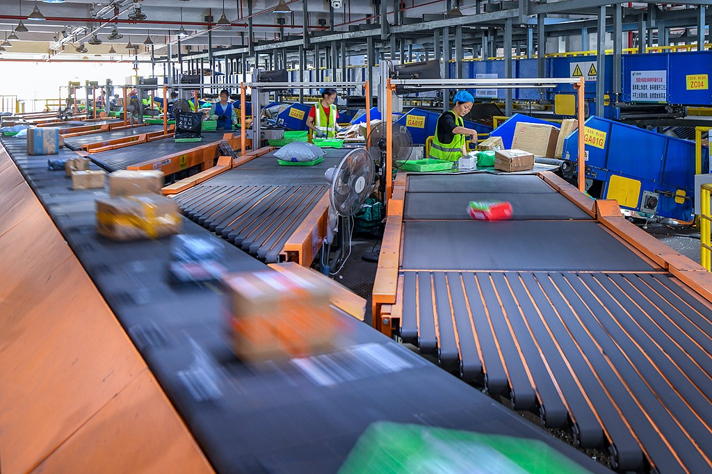 Членове на персонала сортират пакети в разпределителен център за доставка в Хайкоу, провинция Хайнан, на 11 ноември 2025 г. [Photo/VCG]