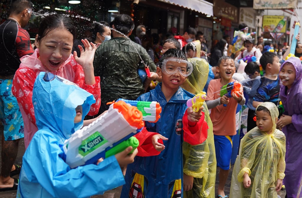 Хората пръскат вода по време на Сонгкран в град Коулун. Снимка: Сам Цанг